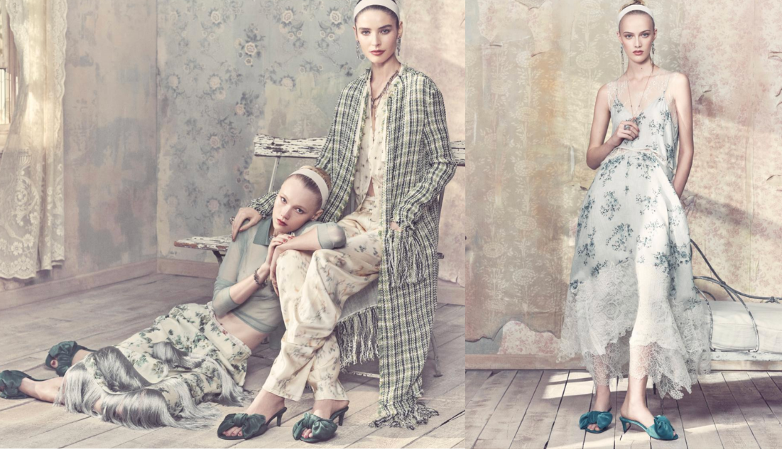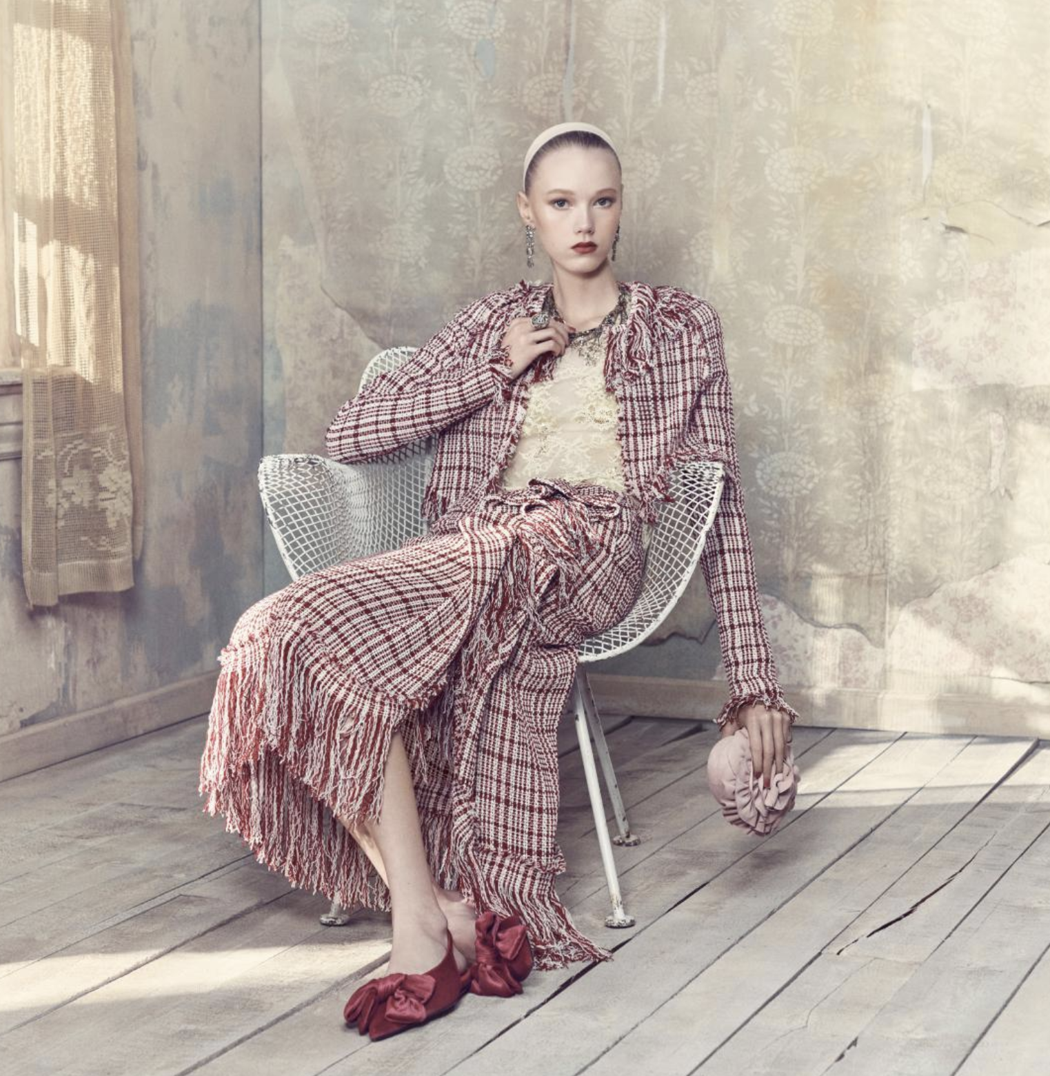 If a brand hires Steven Meisel to shoot its campaigns. If Fabien Baron directs them. If the set design evokes peeling antique walls and iron bed frames and dusty European interiors. If the models are named individually in captions, exactly the way Vogue names them. If the tweed reads Chanel and the maxi bow sandals read JW Anderson and the silk frock coat reads couture.