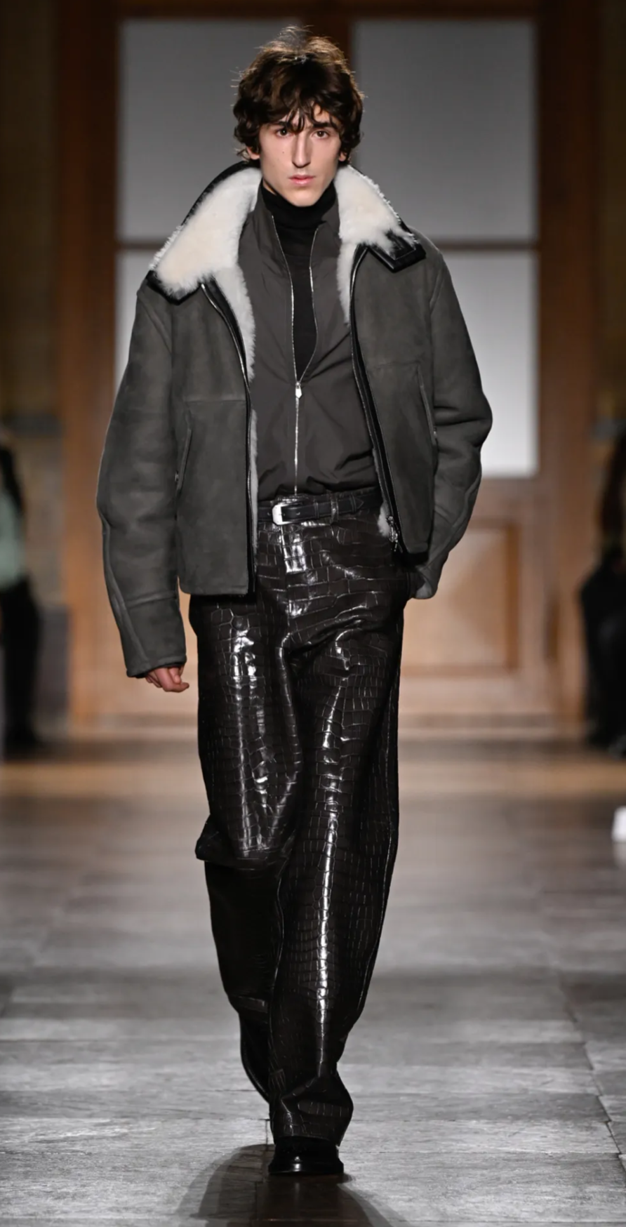 Now consider the crocodile-effect leather trousers.