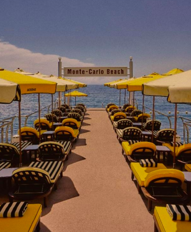 Jacquemus has taken over entire pool cafés and beach cafés in Monaco as seasonal brand environments.